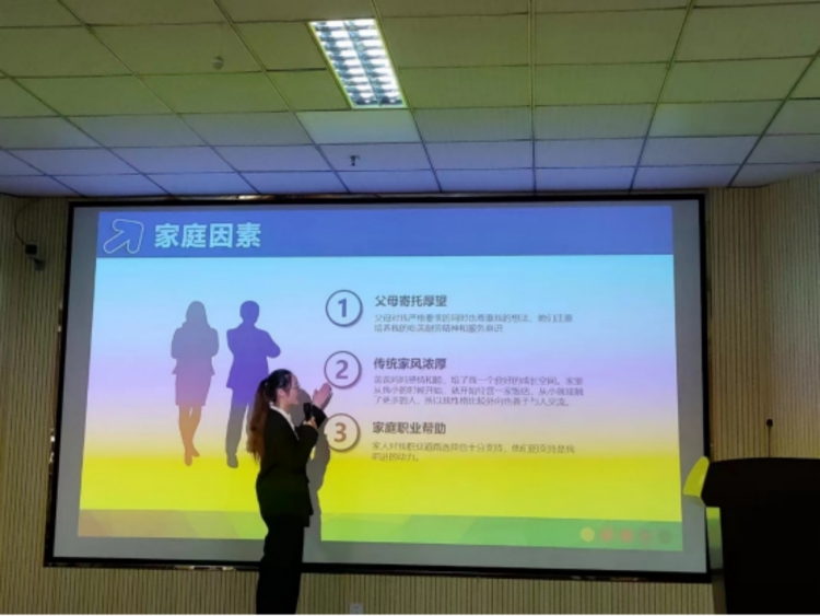 同学们通过自我分析、环境分析和职业分析等步骤对个人职业生涯的进行设计与演说,提前安排、部署自己的大学长期规划与短期目标,为成功就业打下坚实基础。李程同学根据个人的性格色彩模型构想设计了猫咪咖啡馆,徐艺婷同学则根据个人与他人的期待,研究出跨境电商专员的职业生涯理想规划图景。
