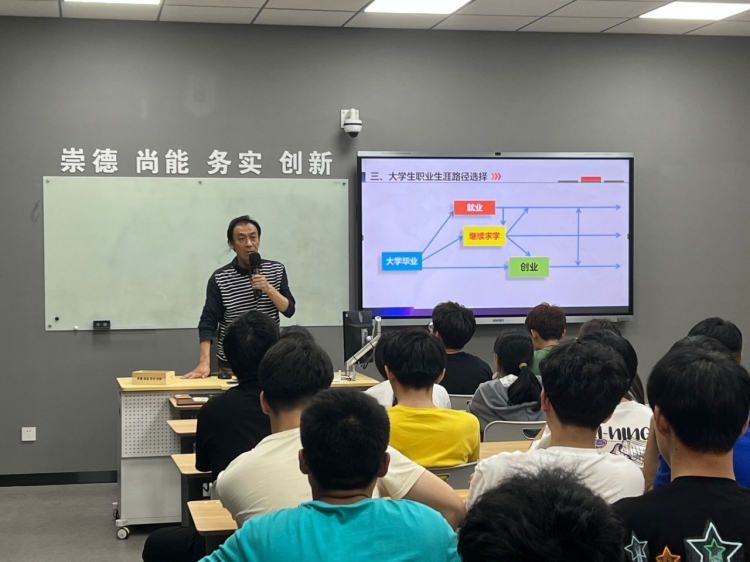 为解答土木工程专业(专升本)学生未来就业和升学的一系列问题,4月19日下午,建筑工程学院和创新创业指导学院联合举办了一场职业生涯规划讲座。本次讲座由建筑工程学院学工科长殷晓玮主持,创新创业指导学院王仪主讲,22级土木工程班级全体学生参加讲座。