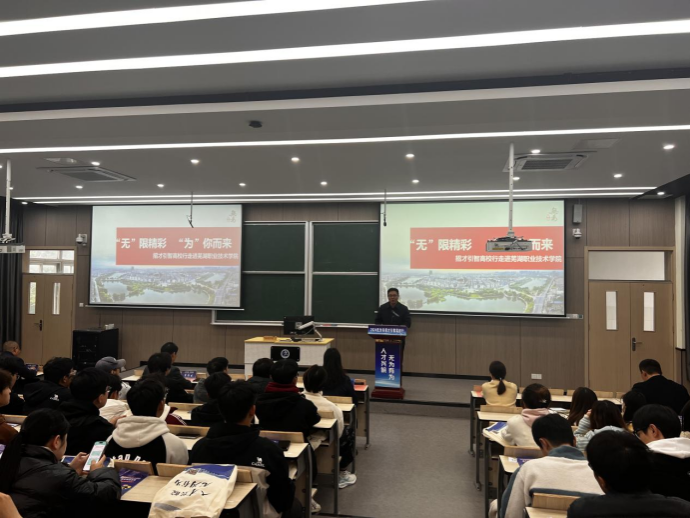 陈兆强介绍了无为市的自然环境、城市建设、历史底蕴和产业发展等情况。他表示,无为不仅是一座需要人才的城市,更致力于打造人才需要的城市。希望同学们多走进无为、了解无为、选择无为,在无为释放激情智慧,成就精彩人生!