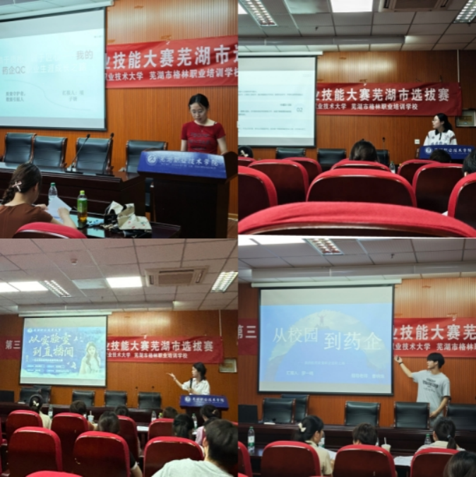 比赛现场,选手们结合自身专业背景与职业愿景,围绕宠物用品带货主播、药品质量管理员和食品检验员等多元化职业展开生动阐述,将专业知识与职业规划深度融合。通过PPT演示、案例分析等形式,清晰呈现了自我认知、职业目标设定与实施路径规划,展现出扎实的专业基础与清晰的职业发展思路。