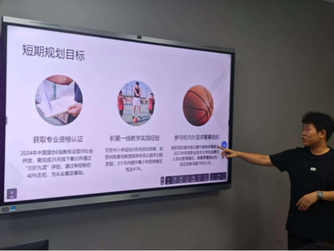 比赛现场,参赛学生以严谨的逻辑和饱满的热情依次登台,通过精心制作的PPT系统呈现个人职业规划与发展。部分学生聚焦自己专业领域,从专业课程学习、实践项目参与到行业前沿技术钻研,构建了分阶段、可落地的成长路径;部分学生结合兴趣与行业趋势,选择体育教育赛道,围绕篮球教练职业发展,详细规划了从校园志愿教学积累经验到考取专业认证的进阶方案。