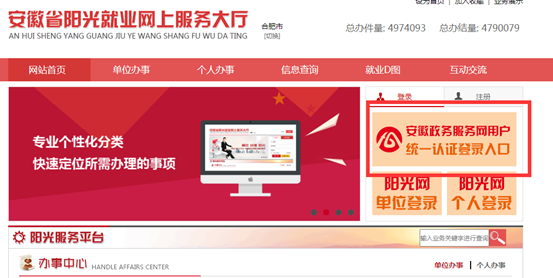 答:打开阳光就业网上服务大厅:ygjy.ah.gov.cn通过点击“安徽政务服务网用户统一认证登录入口”